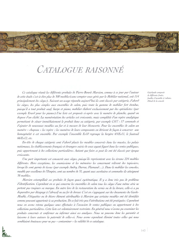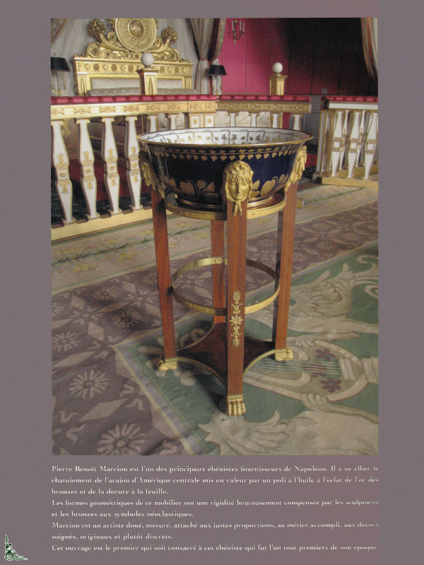 Cet ouvrage de 240 pages avec 350 illustrations couleurs et N.B. présente Pierre-Benoît Marcion (1769 - 1840) l'un des principaux ébénistes fournisseurs de Napoléon.